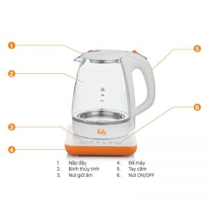 – Đầu tiên, mẹ đặt bình thủy tinh vào đế máy và cắm điện. Máy sẽ ở chế độ chờ. Nhấn nút “ON/OFF” sẽ nghe tiếng “bíp”, máy sẽ bắt đầu ở chế độ đun sôi.
