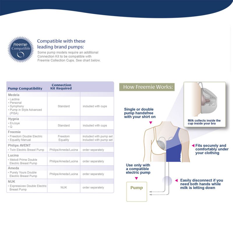 – Cup Freemie tương thích hoàn toàn với các máy trong danh sách. Tùy bộ kit mà có thể gắn được vào các máy hút sữa khác nhau.